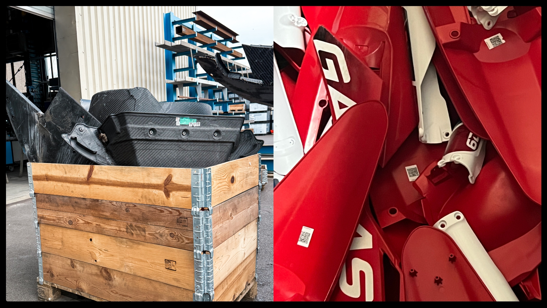 High-value waste streams were identified and secured, including carbon fiber waste from crashed KTM X-Bow race cars and end-of-life polypropylene (PP) components from motorbikes.